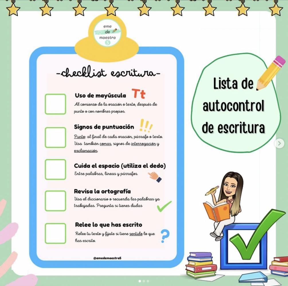 Mi idea es que antes de trabajar cualquier texto utilicen la checklist de apoyo visual para su redacción así como al finalizar, para revisar el contenido. Además de fomentar su AUTONOMÍA